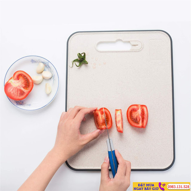 Thớt Gia Dụng Đa Năng 3 Trong 1: Có đá mài đi kèm, giúp bạn có thể mài từng loại dao không sắc trực tiếp bằng đá mài. Con dao sẽ nhanh chóng trở nên sắc bén. Bạn cũng có thể xay tỏi và gừng ở nơi không bằng phẳng ở góc trên bên phải. Cỡ vừa không có khả năng mài tỏi. )