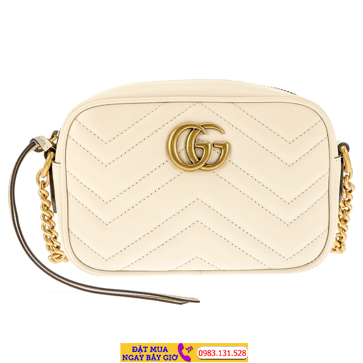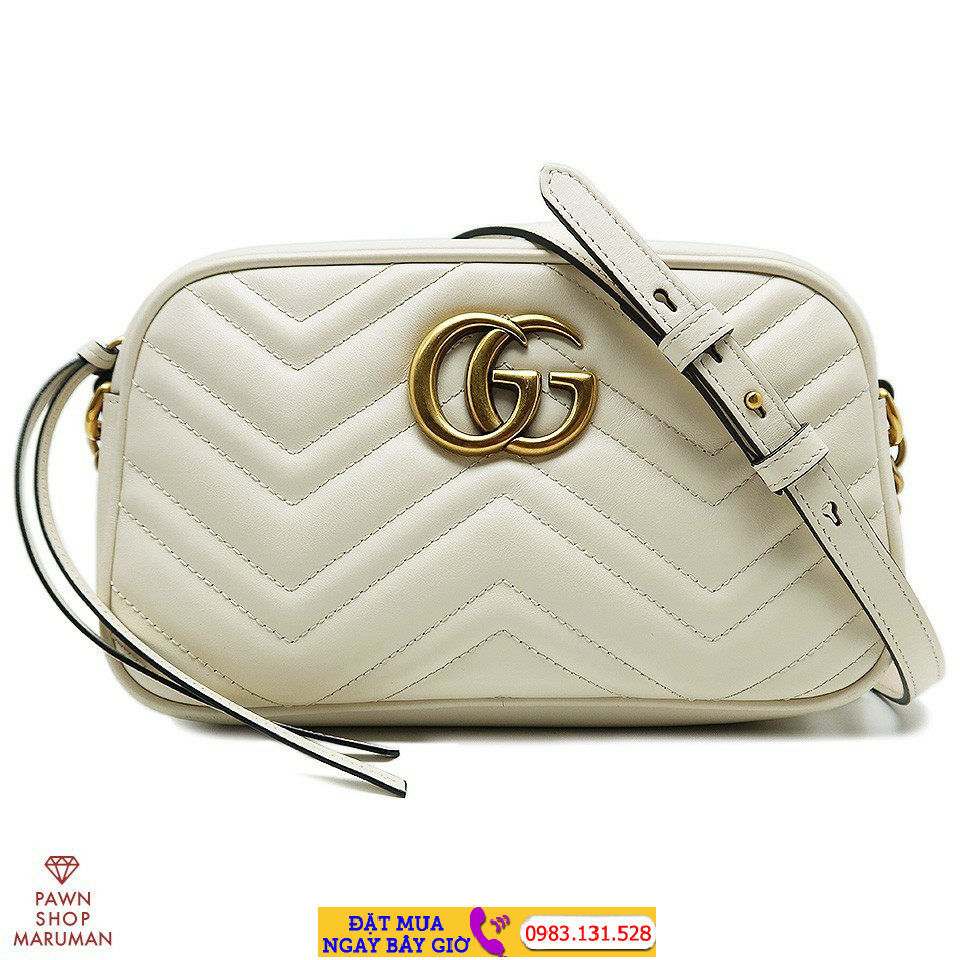 | Gucci GG Marmont Quilted Shoulder Bag 447632 Leather White x Matte Gold |