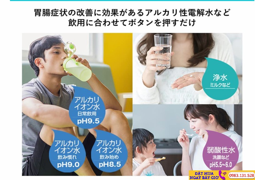 Máy lọc nước điện giải Panasonic tạo ra nước uống điện giải có PH từ 8,5 đến 9,5. Nó chứng minh rằng nước điện giải tính chất kiềm cao do đó việc sử dụng nước từ máy lóc nước điện giải là một giải pháp để bảo vệ sức khỏe của mình hàng ngày.