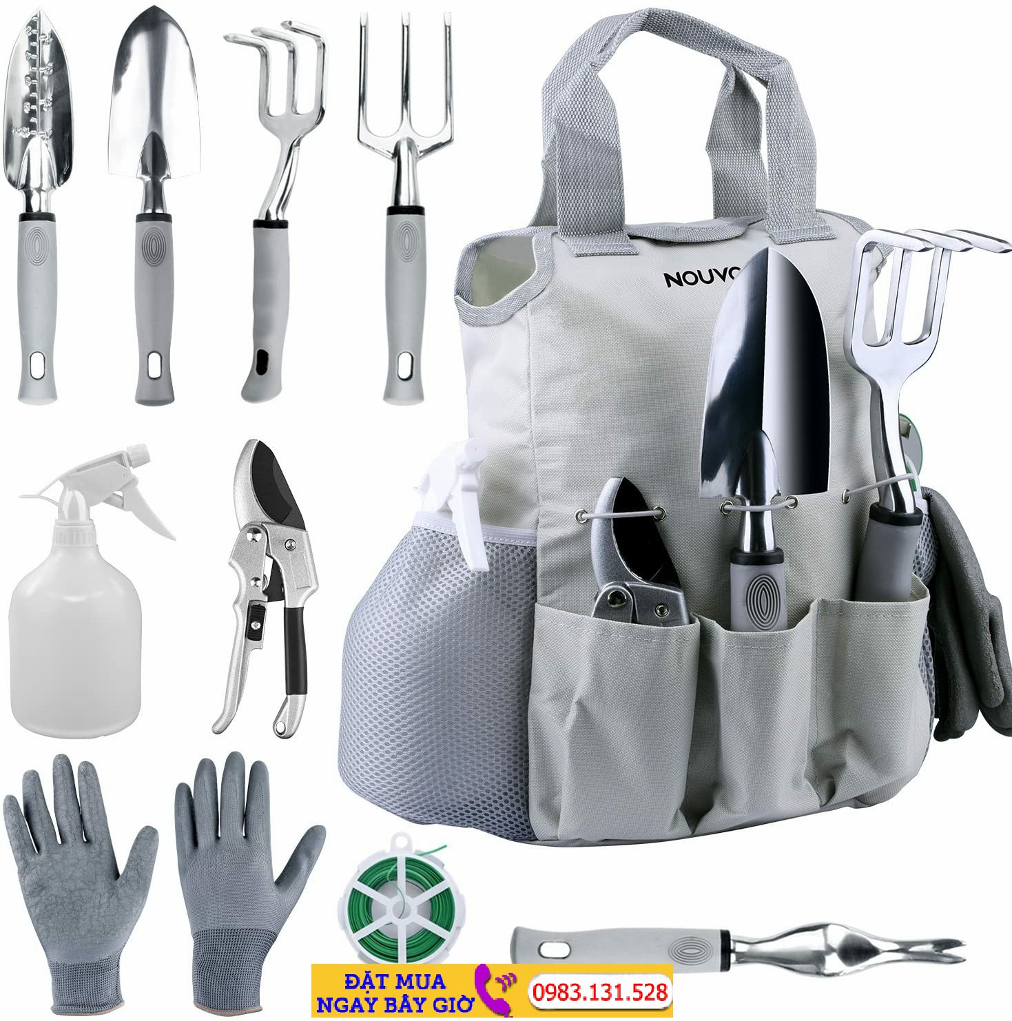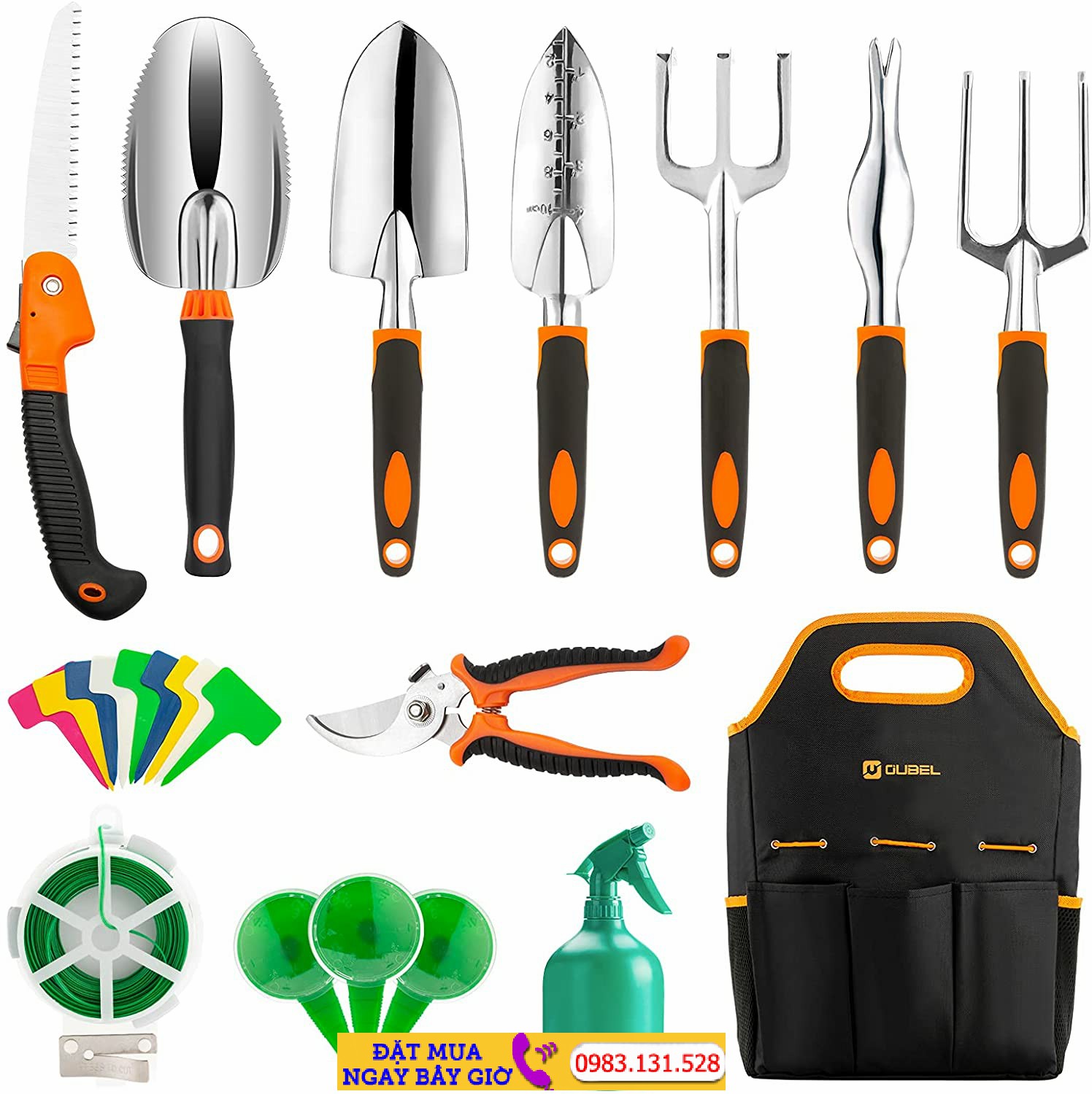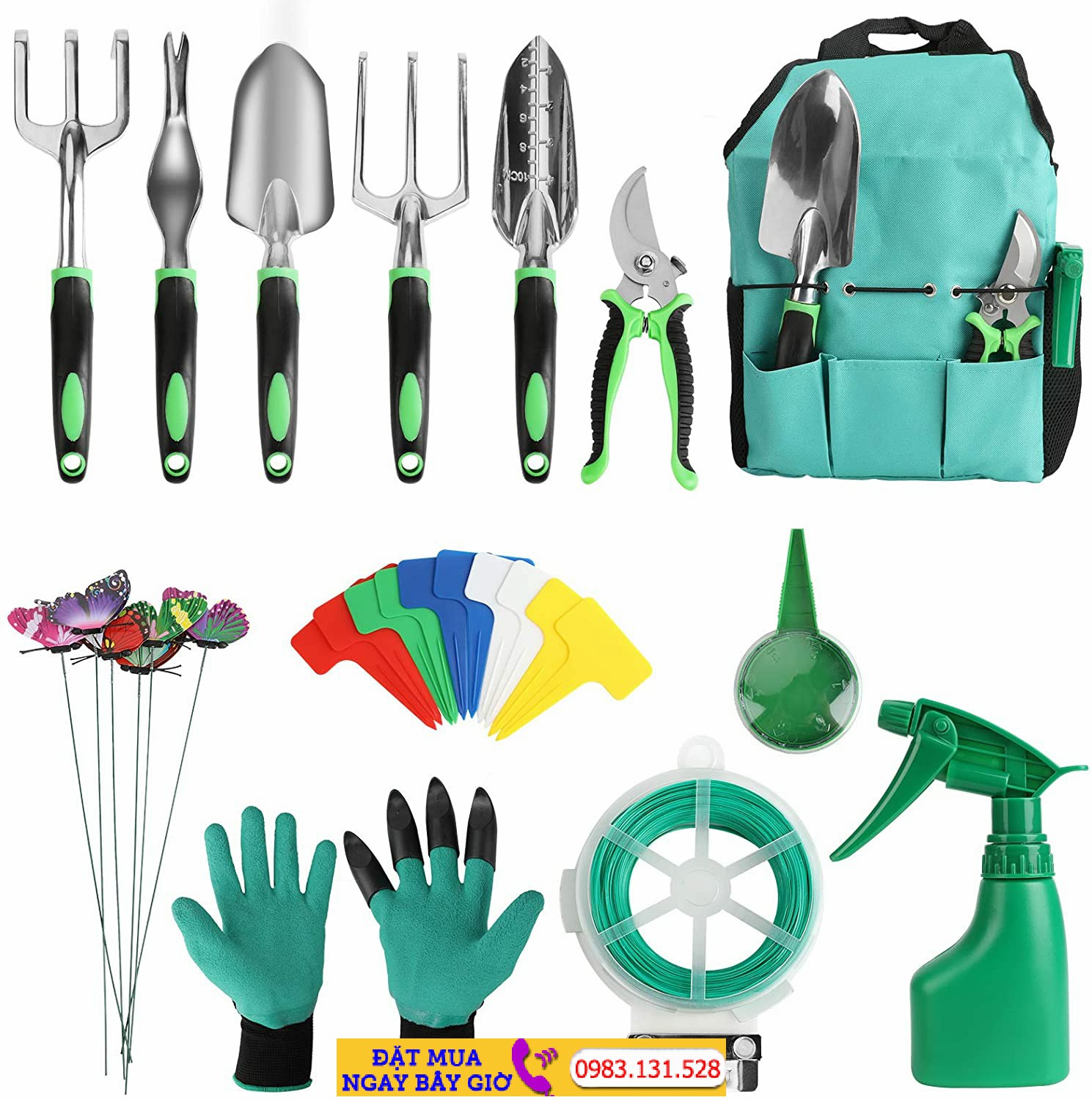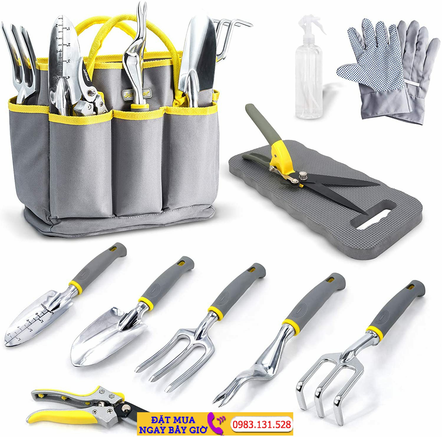 Bộ dụng cụ ygqzm gồm máy cắt tỉa, máy diệt cỏ, máy cấy, nĩa cầm tay, máy xới đất, bình xịt, găng tay và túi đựng – Mã SP: B0C22V6JPQ